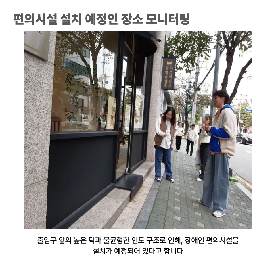 이번 모니터링을 통해 작은 높이 차이, 경사로의 각도, 안내판의 위치가 모두의 안전한 이동 환경을 만드는 데