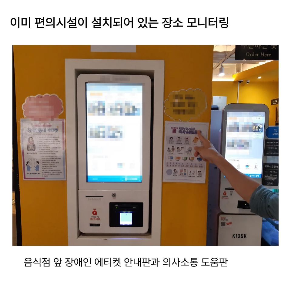 특히 음식점 입구에 설치된 장애인 안내판과 언어 소통 도움판은 접근성을 높이는 좋은 예로 꼽을 수 있었습니다.